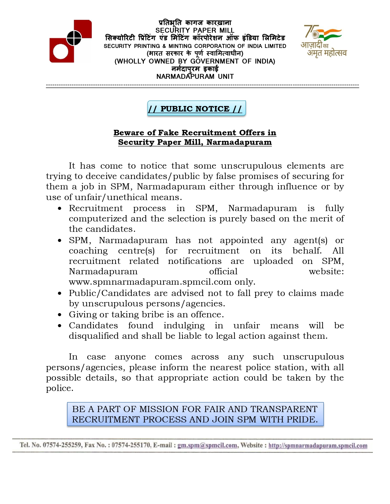 SPMCIL Tenders